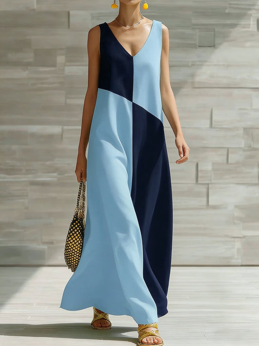 Side Slit Sleeveless Hollow-Out Trimmed Midi Dress