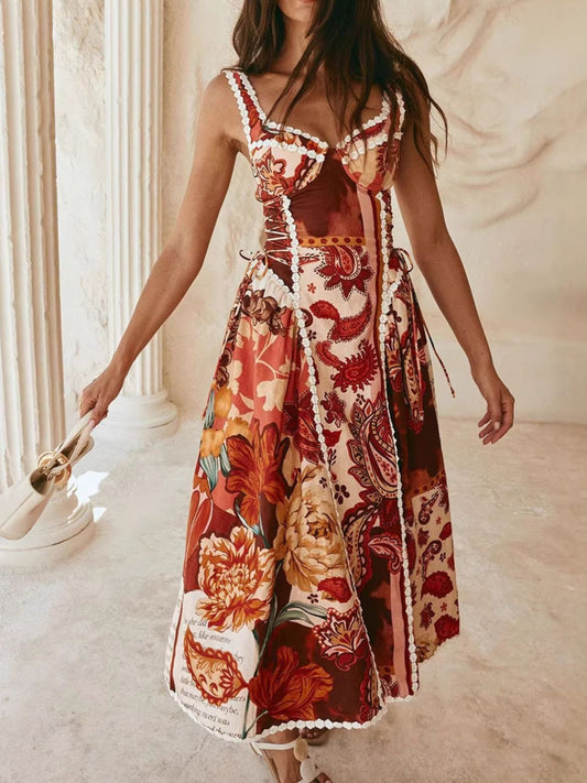 SO ME Floral Maxi Dress With Ribbon Tie Lace Strap