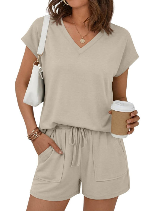 Casual V-Neck T-Shirt and Shorts Set